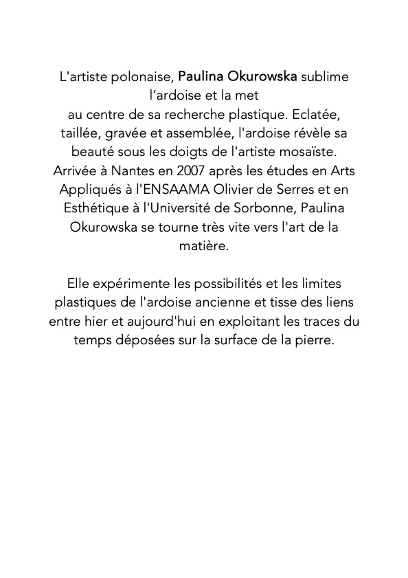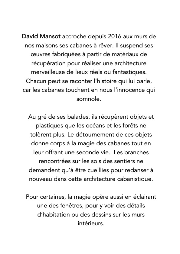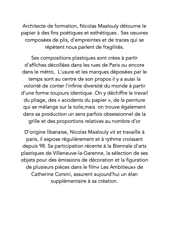 Me consacrant toujours d'avantage à mes pratiques artistiques, je décide d’investir un nouvel espace, toujours à Grasse, l’atelier ARP ou l’Atelier de la recherche patiente », Aujourd’hui, Je vis et travaille à Fréjus.
