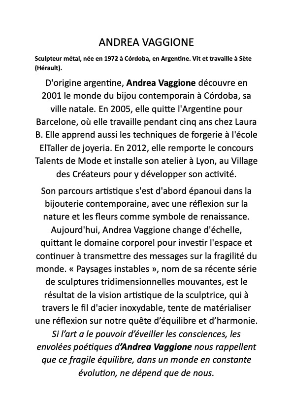 Tout le travail de Valentine Herrenschmidt tend à faire apparaître ces mots qui font vivre toutes choses, et, les pérennisant dans le métal, vise à rendre éternel leurs précieux messages.